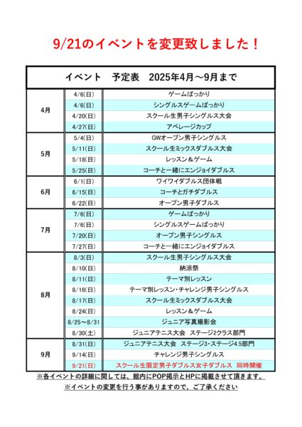 イベント予定表 2026年1月変更しました!
