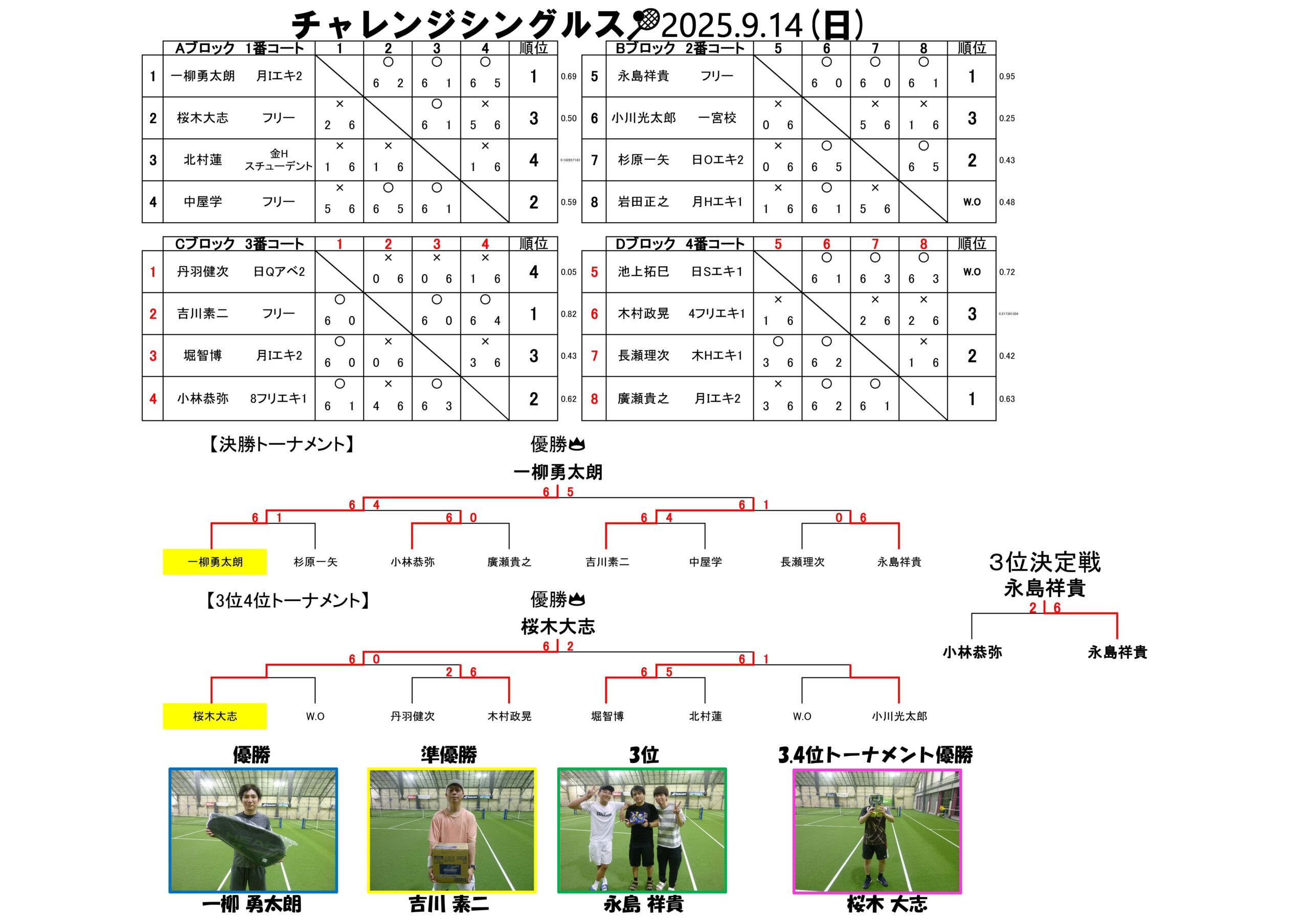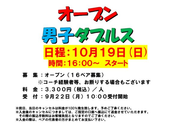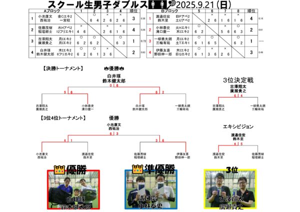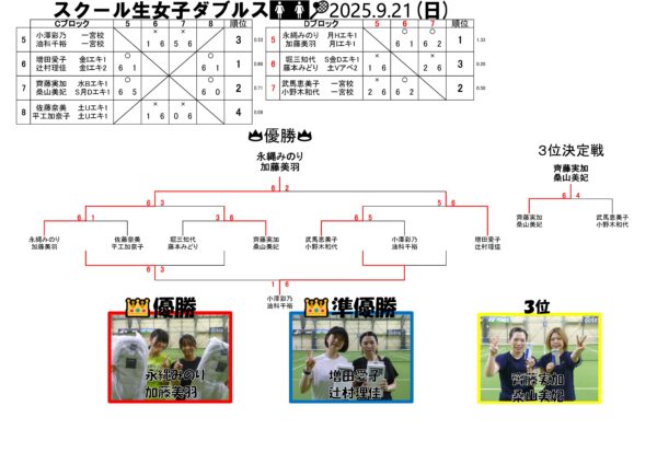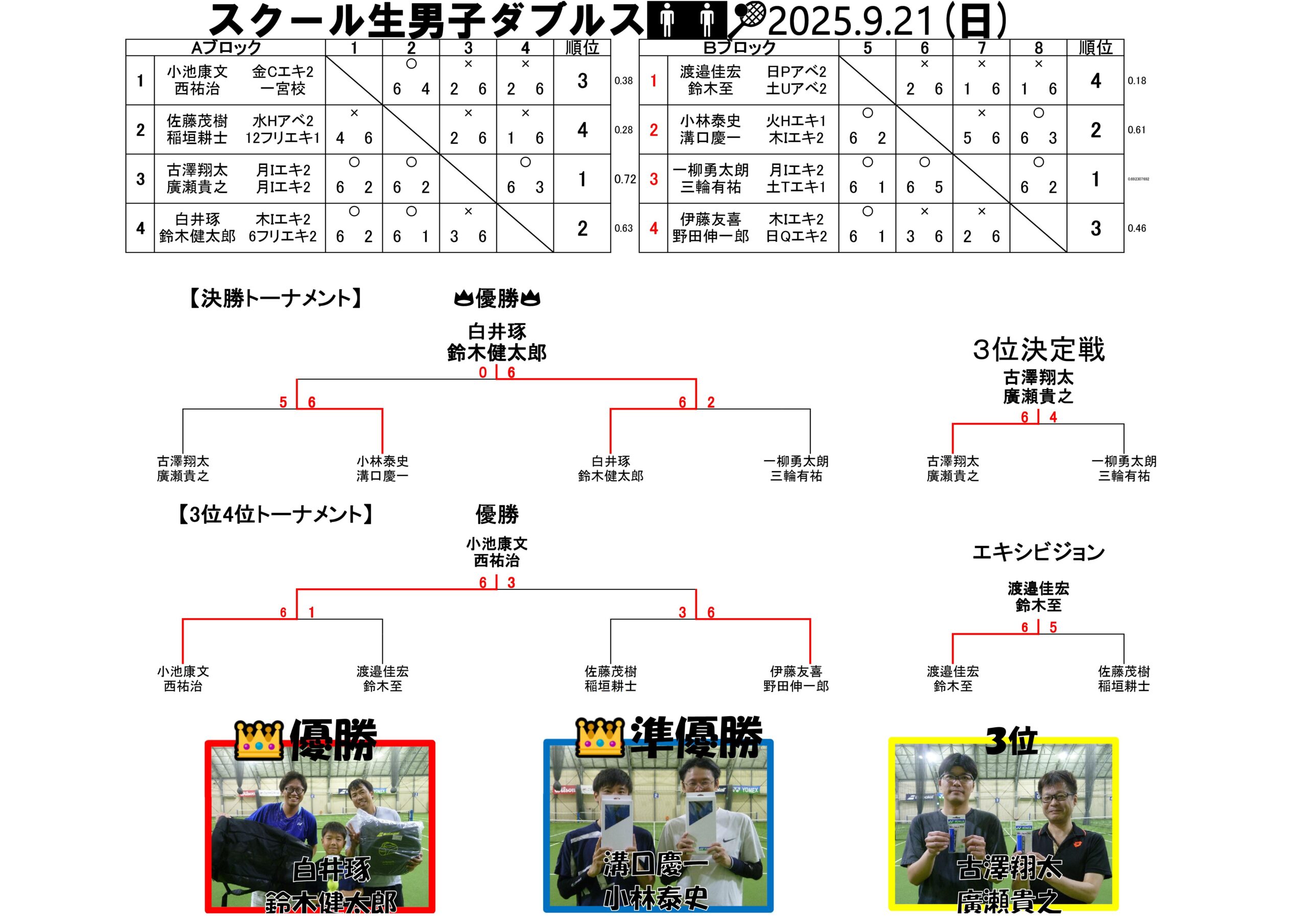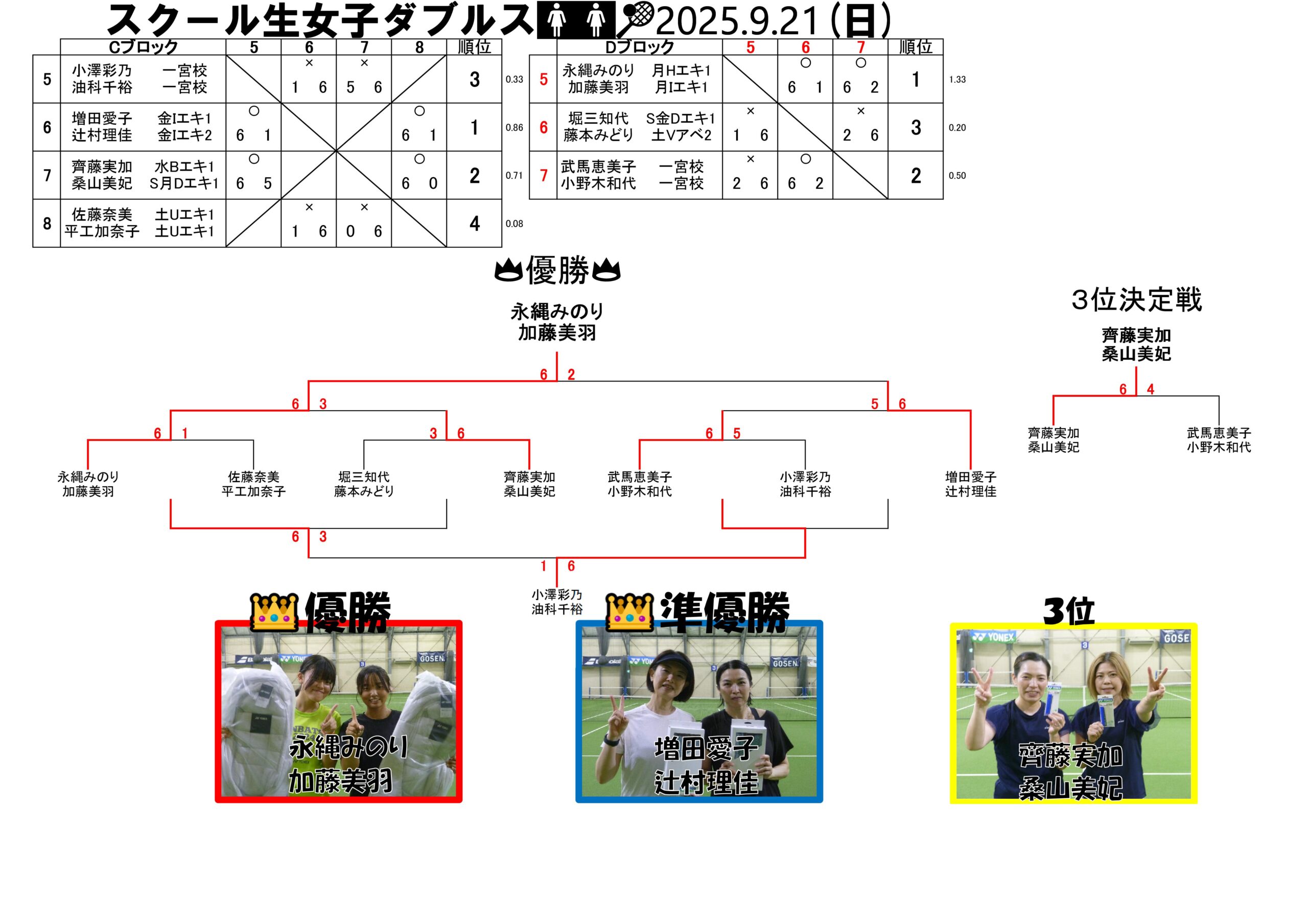 2025.9.21(日) スクール生限定男子ダブルス女子ダブルス同時開催 結果
