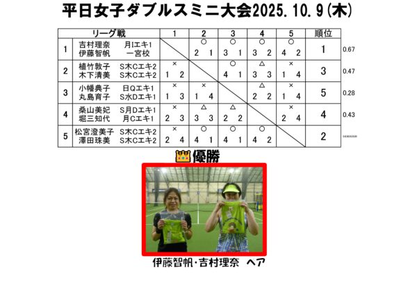 2025.10.9(木) 平日女子ダブルスミニ大会 結果