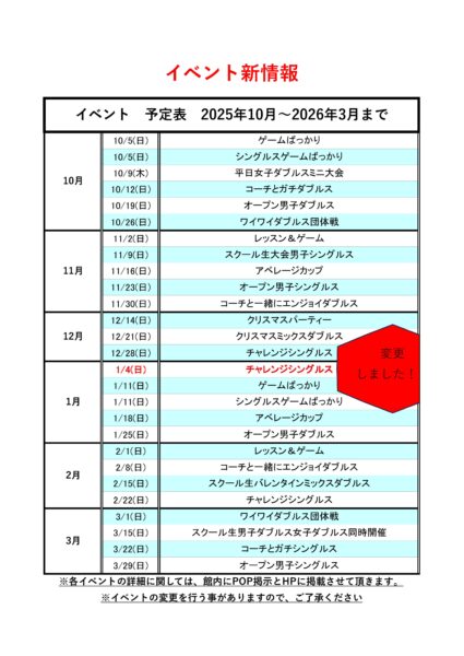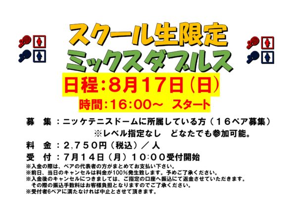 2025.12.21 スクール生限定 クリスマスミックスダブルス 募集要項