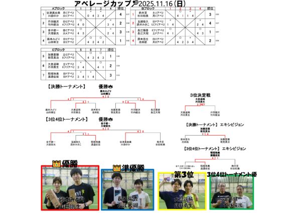 イベント&新着情報 2026.11.16 アベレージカップ 結果 2025年11月16日 « イベント予定表 2026年1月変更しました! 2025.12.21 スクール生限定 クリスマスミックスダブルス 募集要項 »