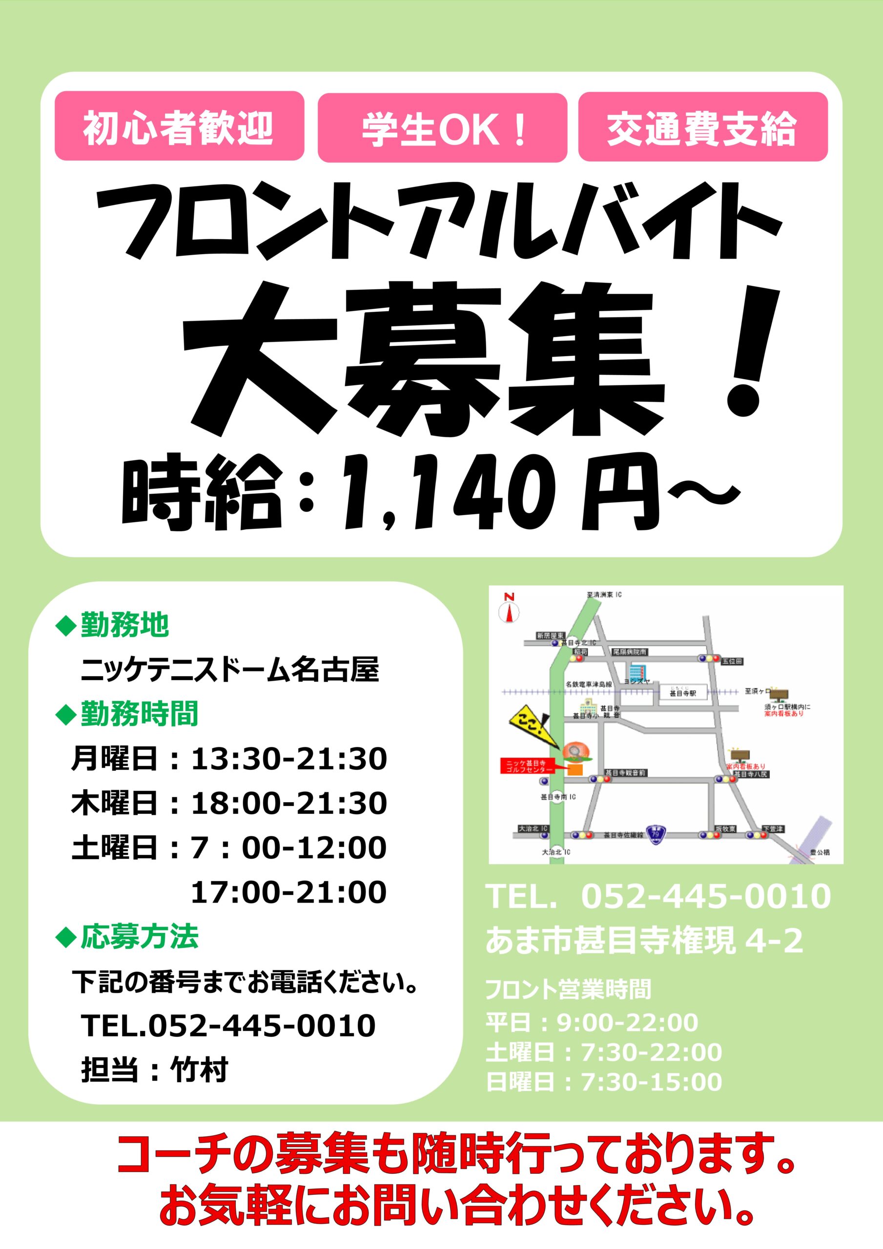 イベント&新着情報 フロントスタッフ、コーチングスタッフ募集中‼ 2025年11月20日 フロントスタッフ、コーチングスタッフを大募集中です! 勤務時間等は相談・調整可能です。 お気軽にお問い合わせください。 愉快なスタッフがお待ちしております! « 2025.12.21 スクール生限定 クリスマスミックスダブルス 募集要項 2025.11.23(日)オープン男子シングルス結果 »