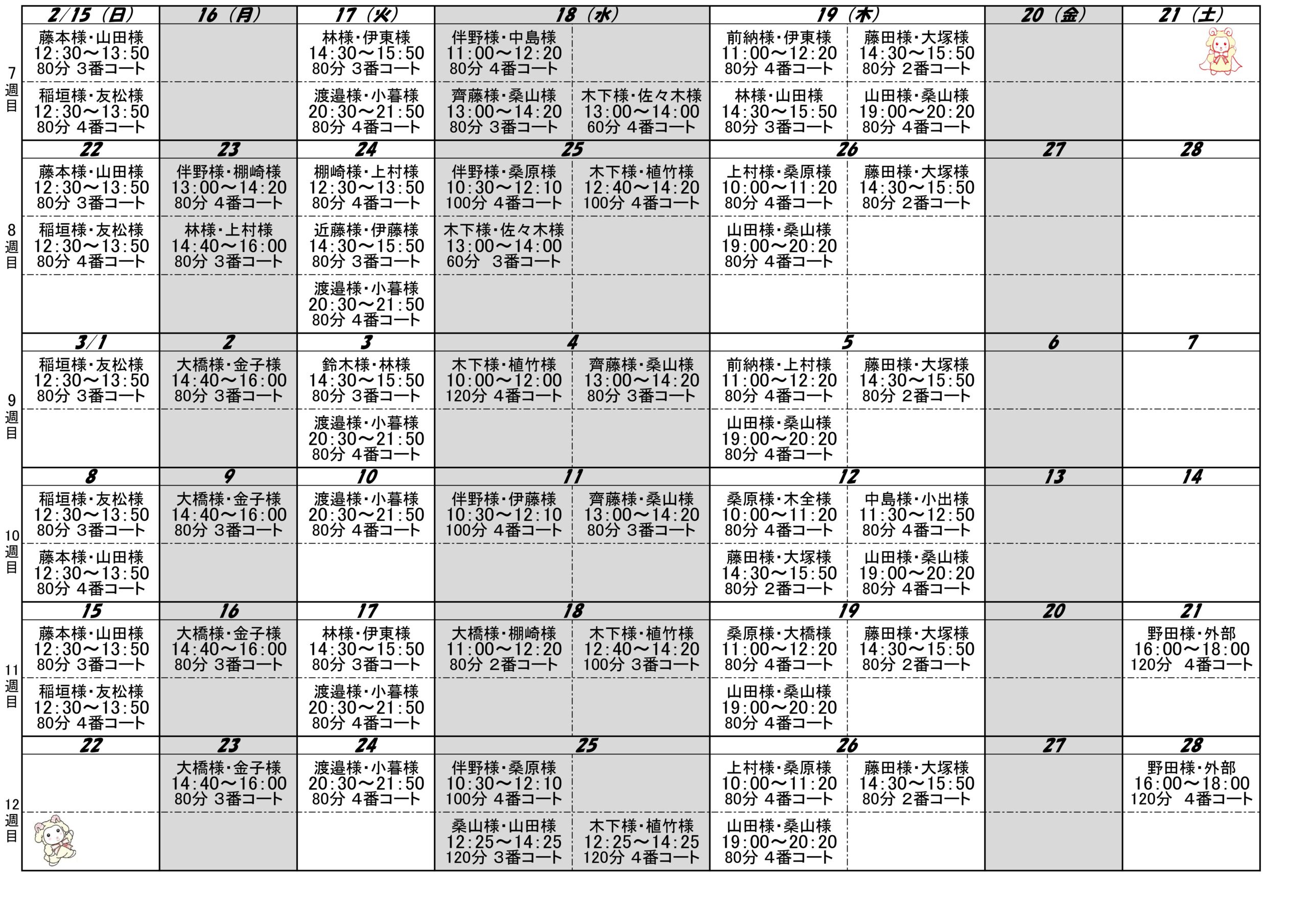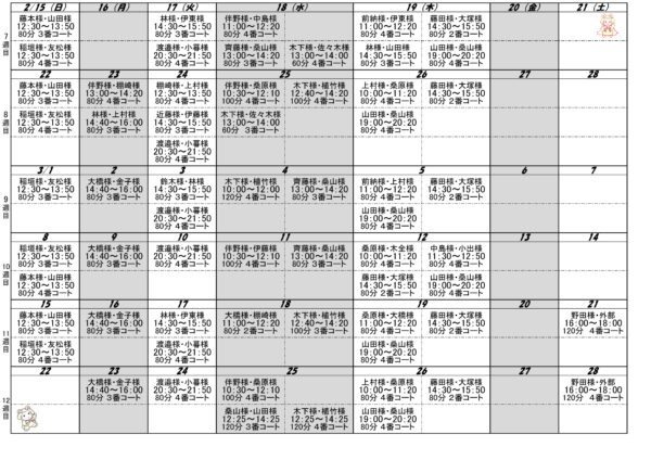 レッスンスケジュール