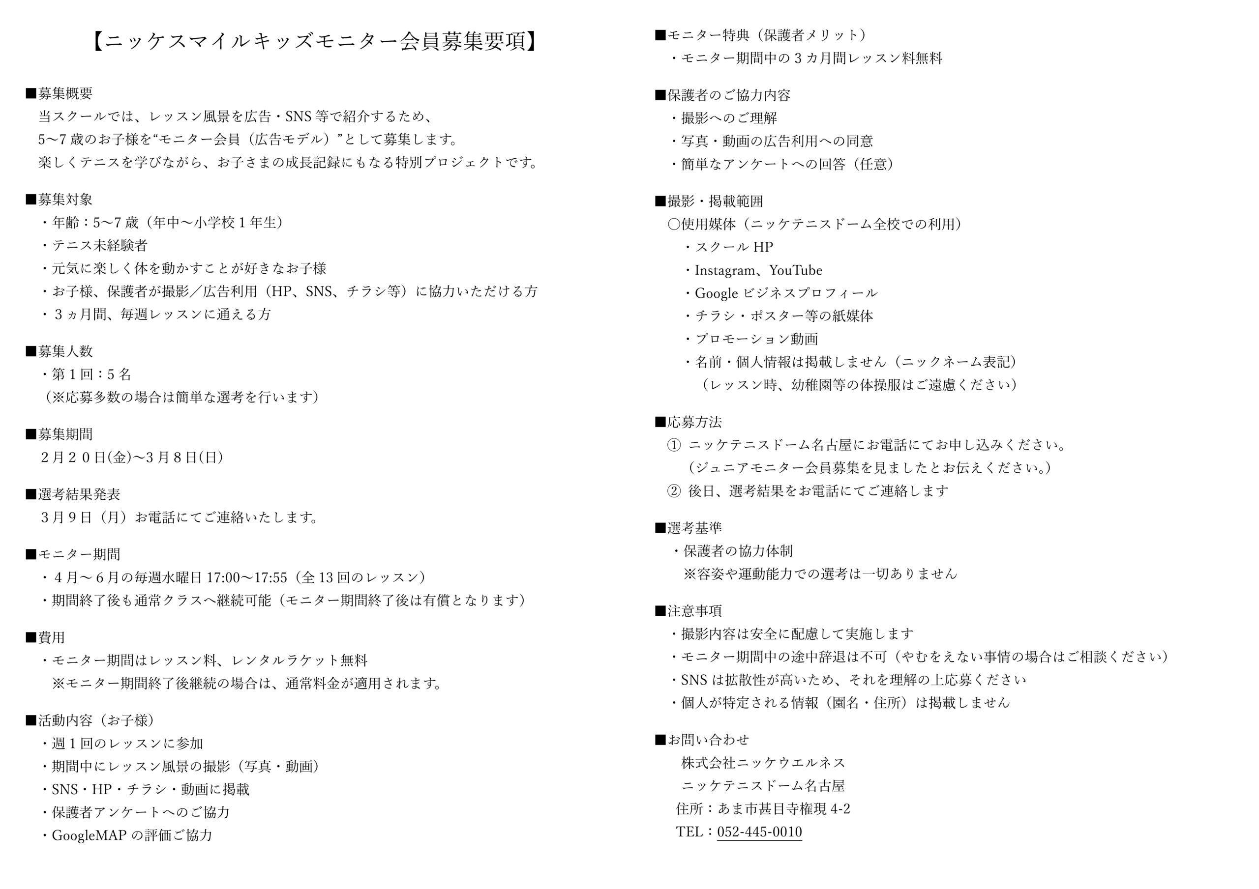 ニッケスマイルキッズプロジェクト キッズモニター会員募集