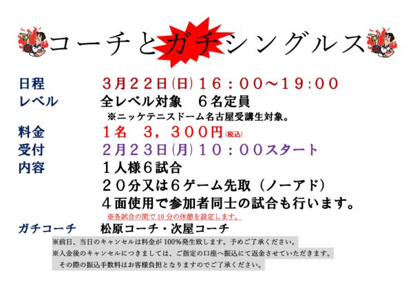 3/15 スクール生限定 男子D女子D同時開催!! 募集要項