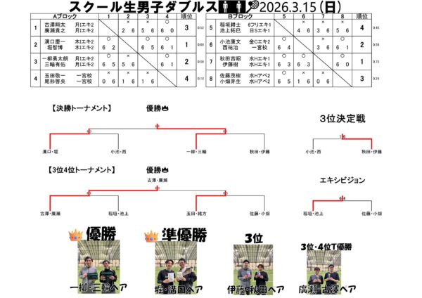 3/15㈰スクール生男子ダブルス大会結果
