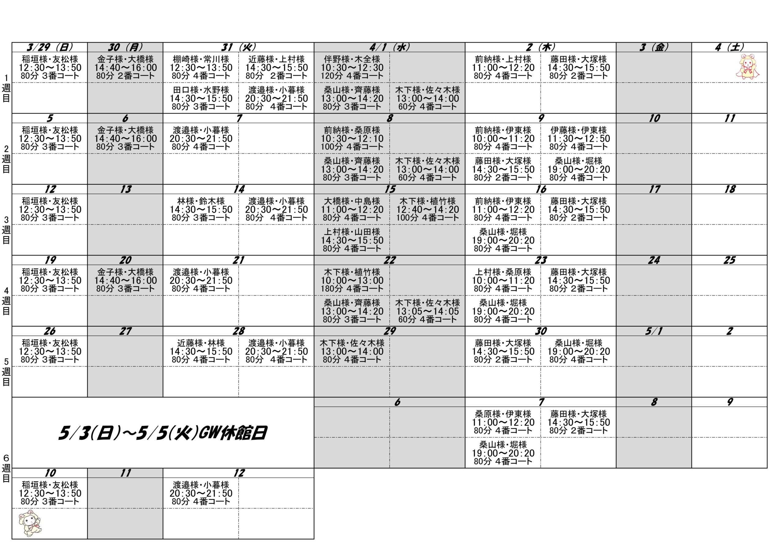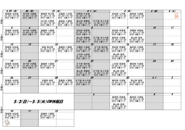 レッスンスケジュール