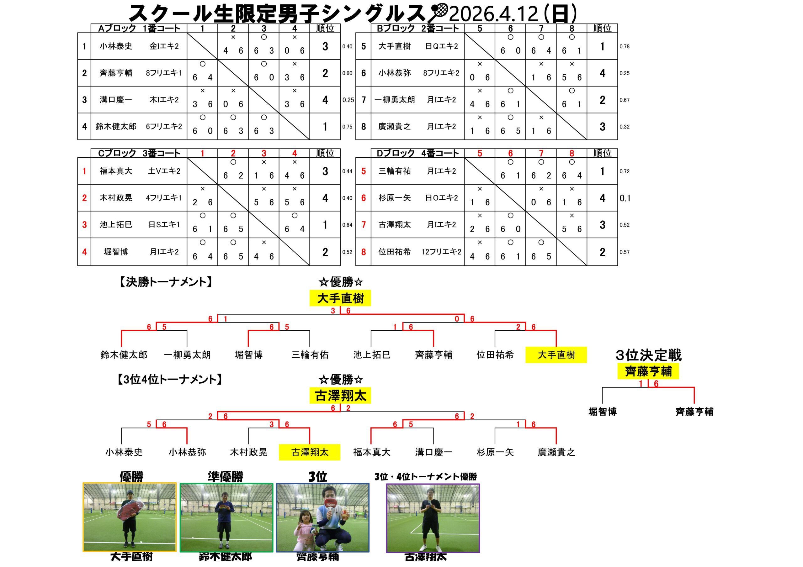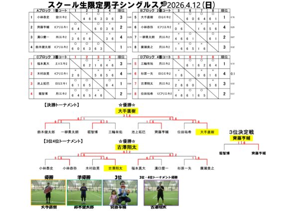 スクール生限定男子シングルス結果(4/12)