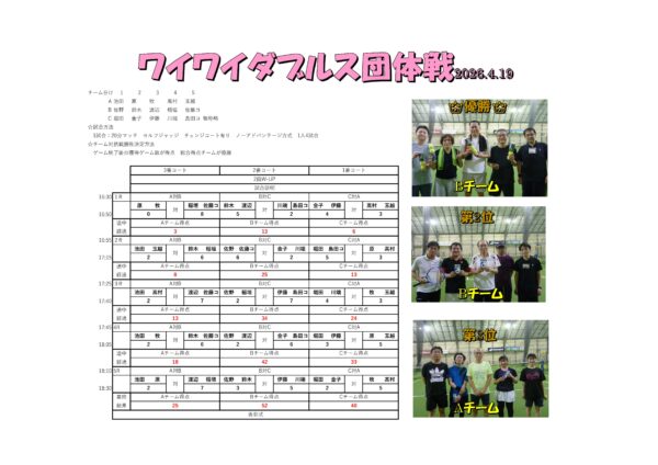 2026.4.19 ワイワイダブルス団体戦 結果