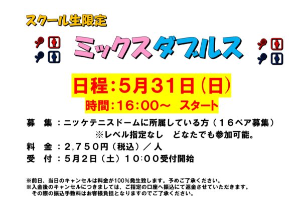 2026.5.31 スクール生限定 ミックスダブルス 募集要項