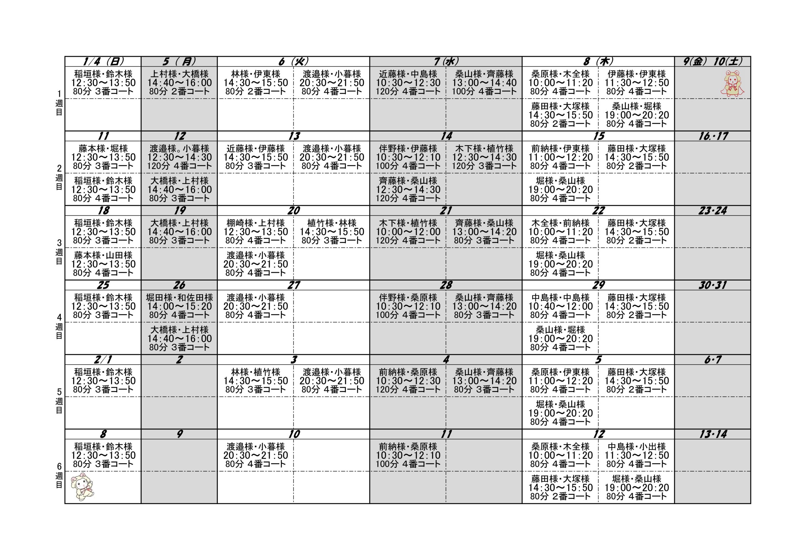 レッスンスケジュール